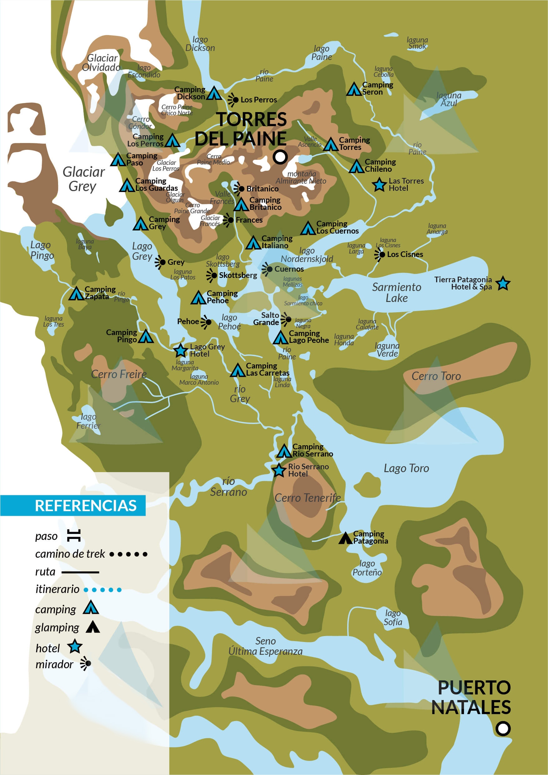 Los monumentales picos de granito forman uno de los paisajes más lindo de la Patagonia. La zona de Torres del Paine es visitada por amantes del trekking de todo el mundo. Dentro del Parque Nacional hay diferentes senderos para caminar y áreas de camping. Los circuitos de trekking en las Torres del Paine son considerados unos de los más famosos del mundo. Los paisajes son maravillosos.